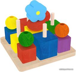 - Комплектация 15 разноцветных деталей на платформе и 12 игровых карточек с заданиями различной сложности