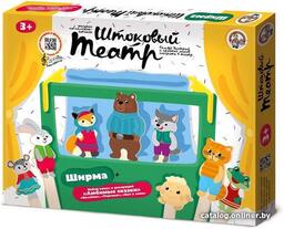 • Комплектация Ширма: сцена (43х33,5х16 см), подставка (43х12,5 см), штанга для крепления фоновой шторки (40х1,5 см), фоновая шторка.Штоковые куклы – 8 шт. (размер кукол – 15-21 см.)Декорации – 4 шт.Комплект липучек для крепления декорацийСценарии