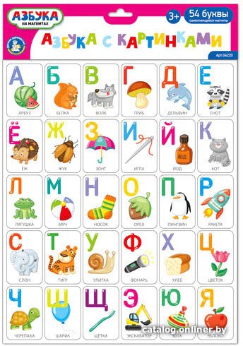 - Комплектация карточки с буквами – 54 шт. (4,5 х 6,7 см)самоклеющиеся магниты – 54 шт.