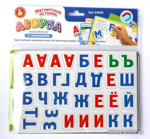 • Комплектация двухстороннее магнитное игровое поле (23,5 х 14,7 см)карточки с заданиями – 8 шт. (22,5 х 13,7 см)магнитные буквы – 62 шт. (высота – 3 см)