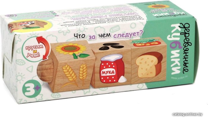 • Комплектация кубики деревянные на оси – 3 шт. (размер грани кубика 4 см