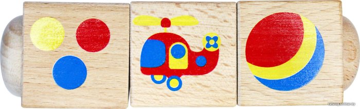 • Комплектация кубики деревянные на оси – 3 шт. (размер грани кубика 4 см