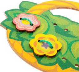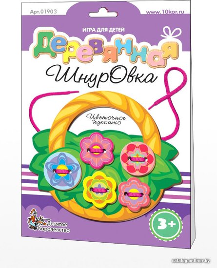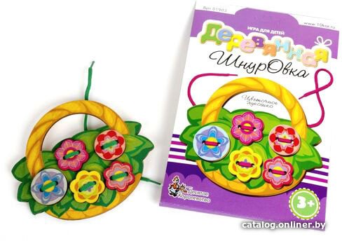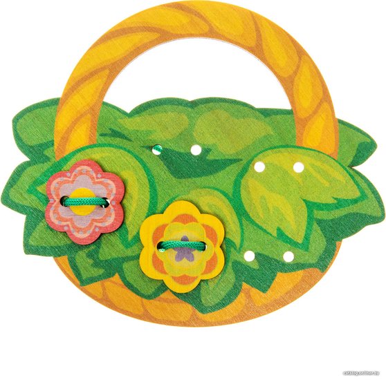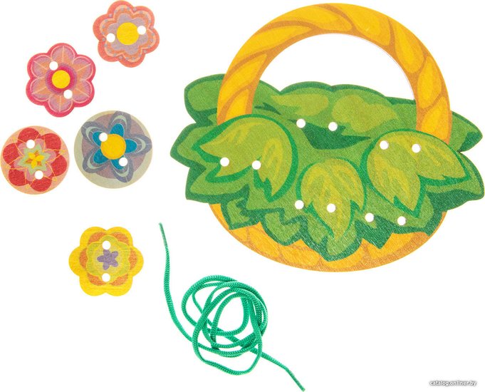 • Комплектация деревянная основа в виде цветочного лукошка – 1 шт;деревянные детали для шнурования – 5 шт;цветной шнурок – 1 шт.
