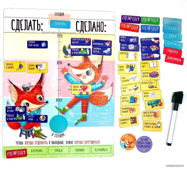 - Комплектация магнитное поле (22 х 29 см)магниты – 44 шт. (прямоугольные: 4 х 2 см; круглые: диаметр – 3,5 см)маркер с магнитом и стирателем