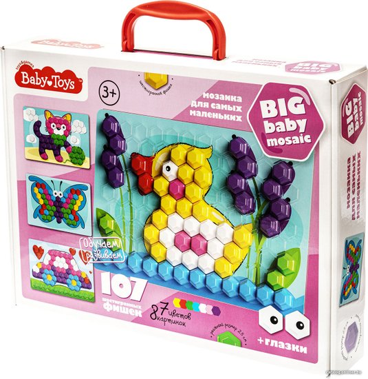 • Комплектация плата на 104 фишки (348 х 233 мм)двухсторонние картинки – 4 шт. (345 х 230 мм)цветные шестигранные фишки – 105 шт. (7 цветов, размер – 2,5 см)глазки – 2 шт. (размер – 2,5 см)