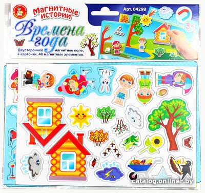 Комплектациядвустороннее магнитное поле (14,5 х 23,5 см)магнитные фигурки – 48 шт. (1–6 см)игровые карточки – 4 шт. (13,7 х 22,5 см)