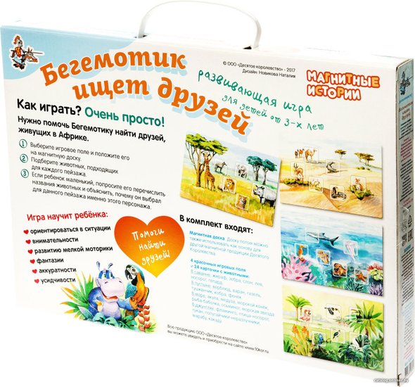 • Комплектация магнитный планшет (35,5 х 25 х 2 см)двухсторонние игровые поля – 2 шт. (305 х 208 мм)магнитные карточки – 24 шт. (43 х 43 мм)