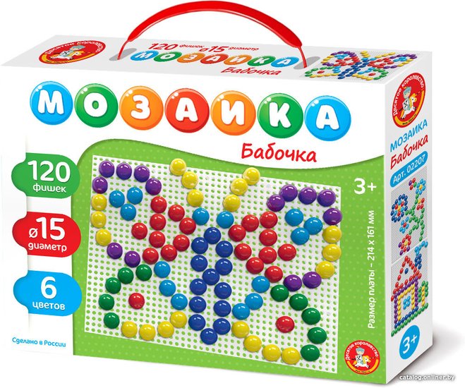 • Комплектация плата – 1 шт. (16 х 21,5 см)цветные фишки – 120 шт.