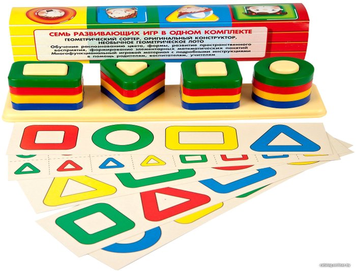 - Назначение для развития координации/моторики, для развития логики/внимания, для развития памяти, для изучения оттенков цветов, для изучения геометрических фигур