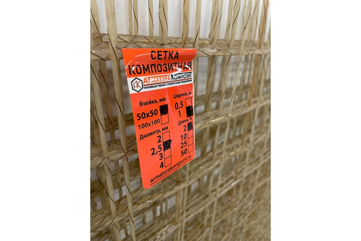 Стеклопластиковая сетка Арматура Композит (карта 2,5 мм; ширина 1 м; длина 2 м; ячейка 50 мм; 10 штук) 4687202269389