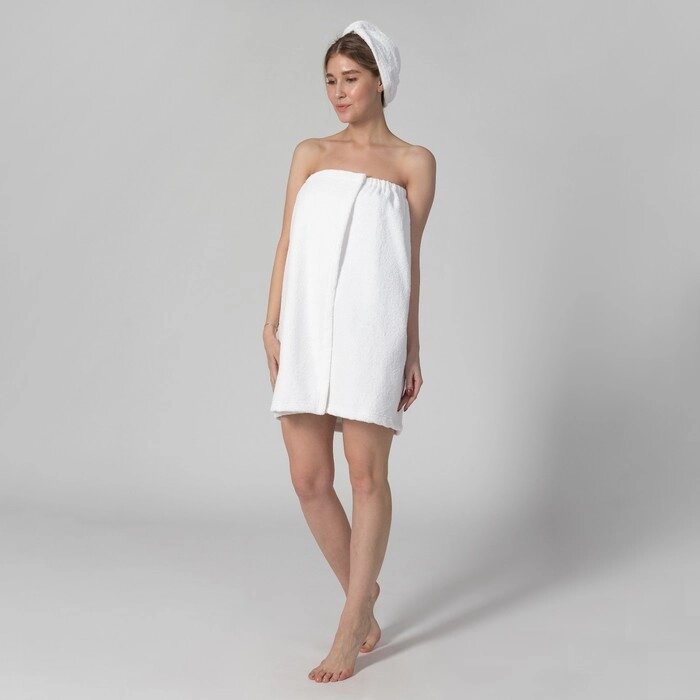 Набор для сауны Экономь и Я: полотенце-парео 68*150см+чалма, белый,100%хл, 320 г/м2