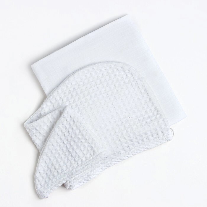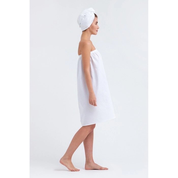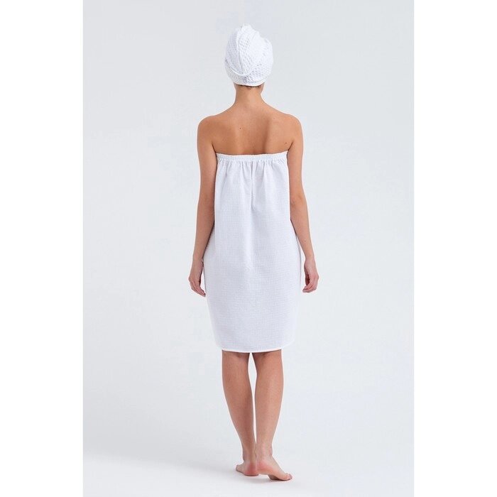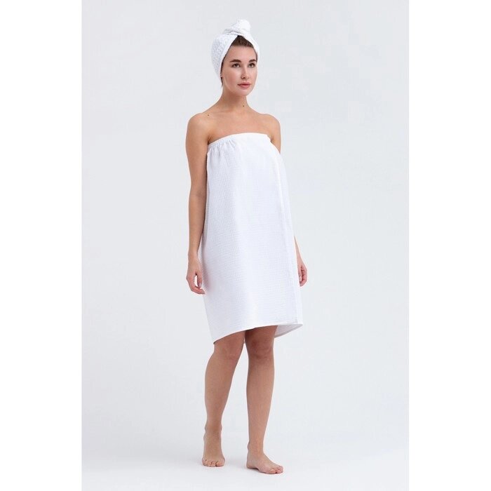 Набор для сауны Экономь и Я: полотенце-парео+чалма, цв. белый, вафля, 100%хл, 200 г/м2