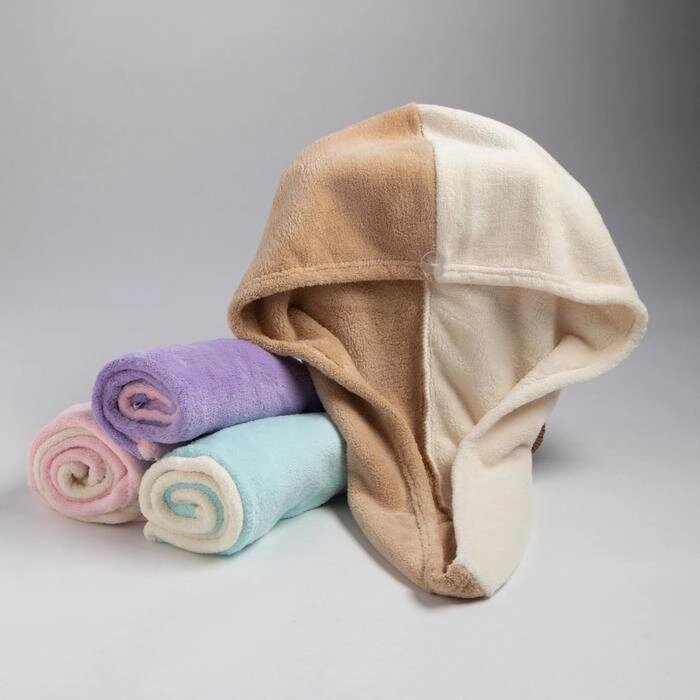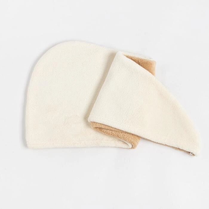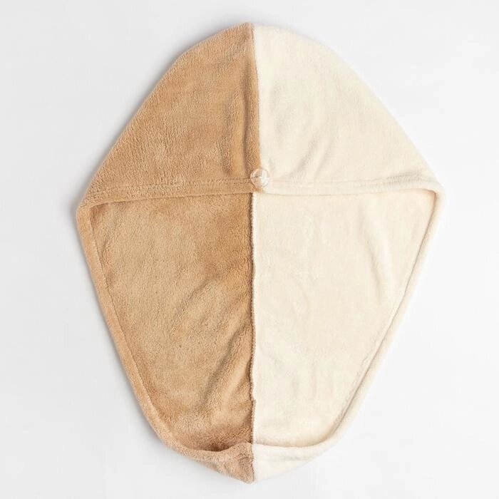 Чалма для сушки волос Этель "Двухцветная" , цв. бежевый/коричневый, 65*25 см, 100% п/э