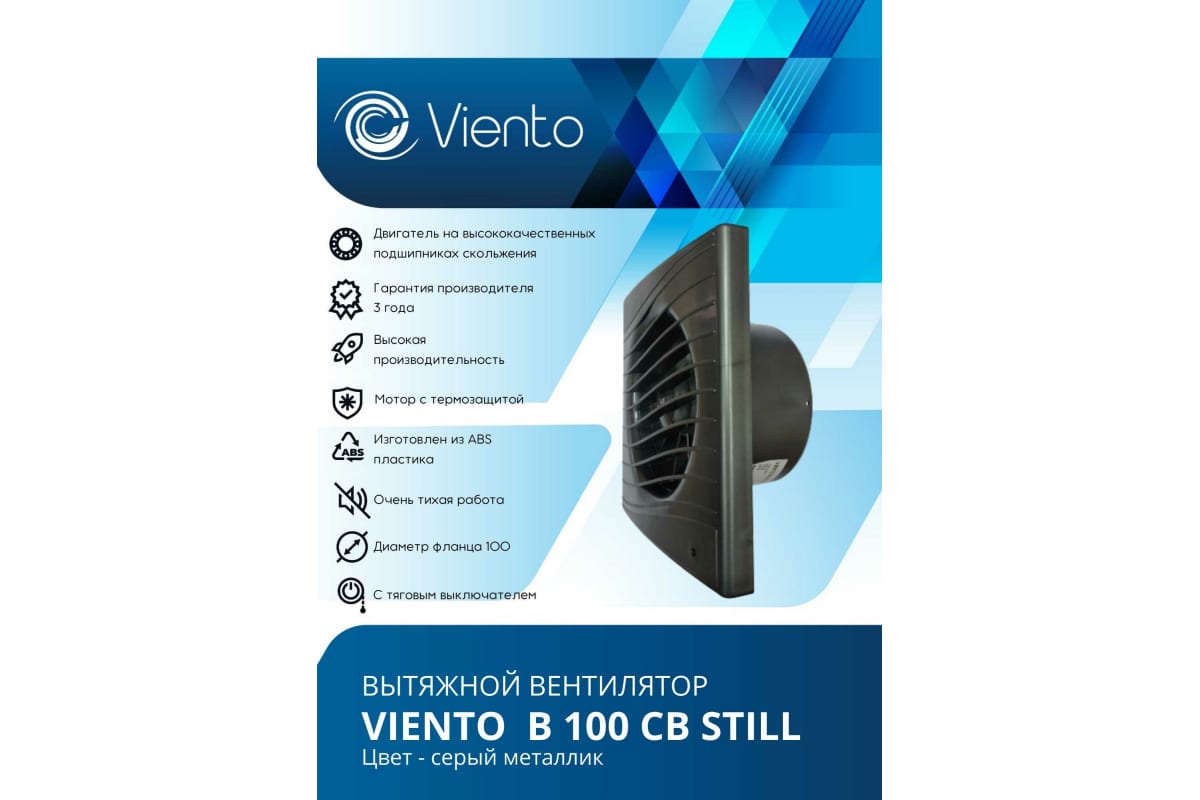 Осевой вытяжной вентилятор ВИЕНТО тяговый выключатель В100СВ STILL gray применяется для постоянной или периодической вытяжной вентиляции бытовых помещений.