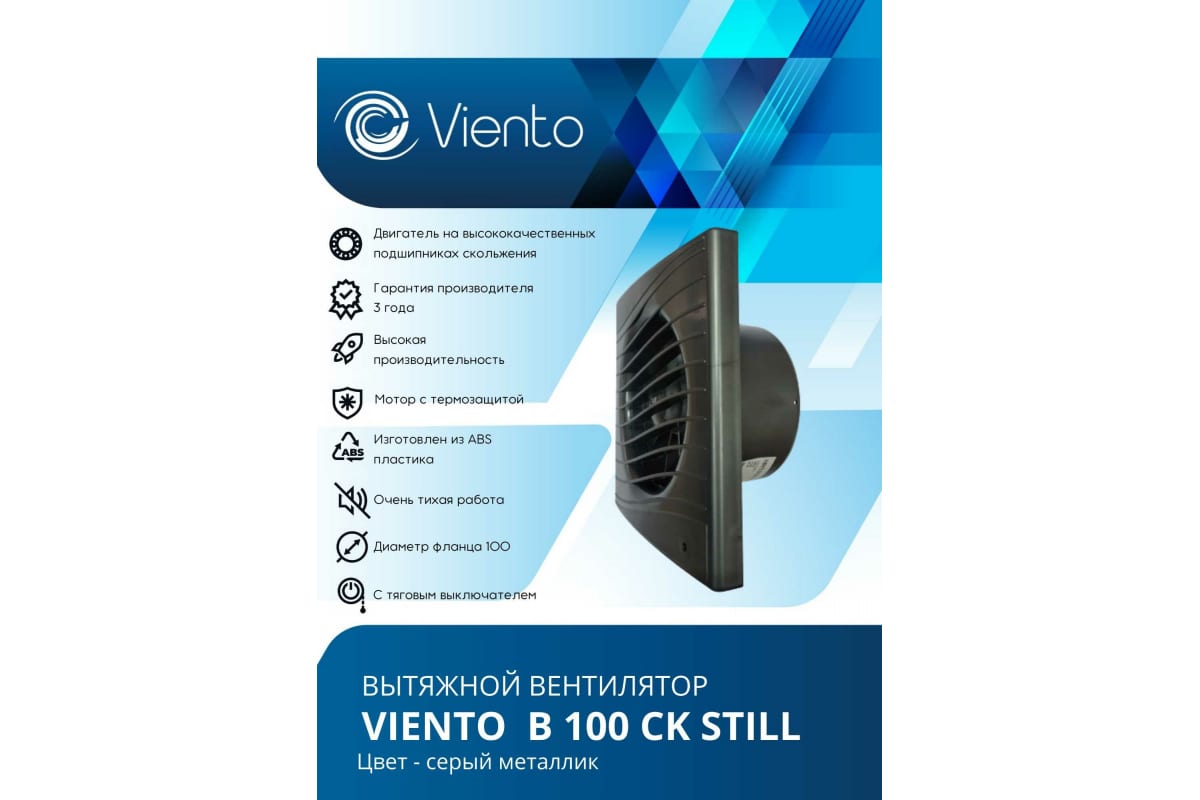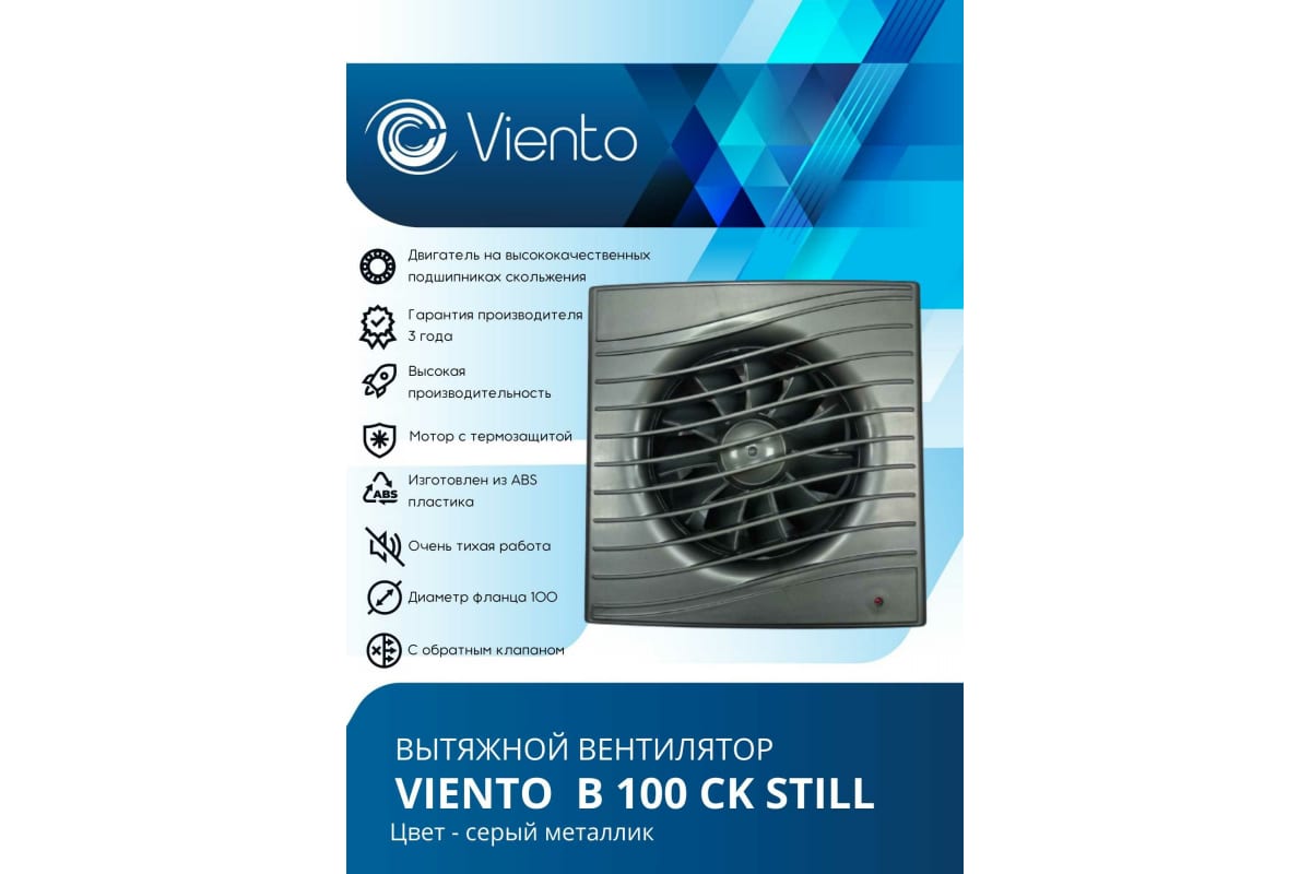 Осевой вытяжной вентилятор ВИЕНТО с обратным клапаном В100СК STILL gray применяется для постоянной или периодической вытяжной вентиляции бытовых помещений.