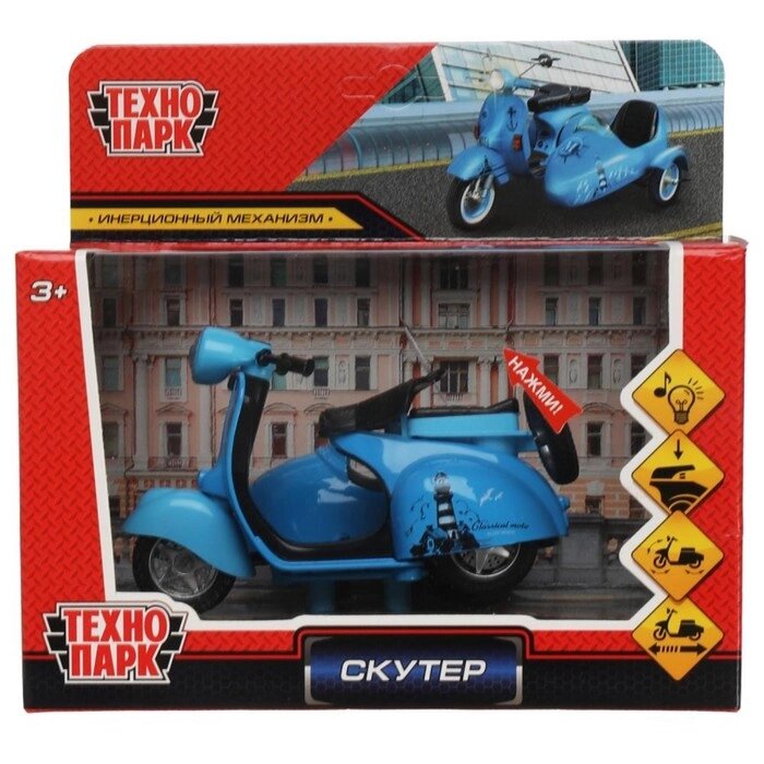 Модель металлическая "Скутер", 12 см, инерция, световые и звуковые эффекты, цвет голубой
