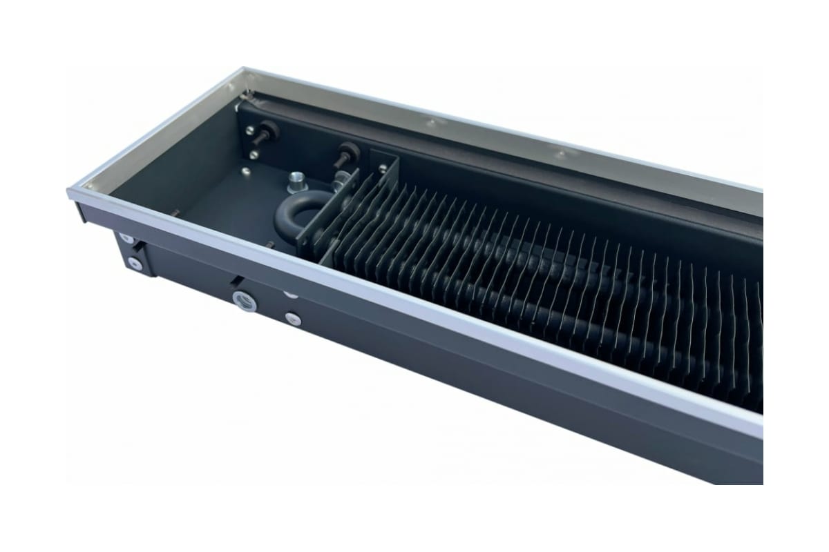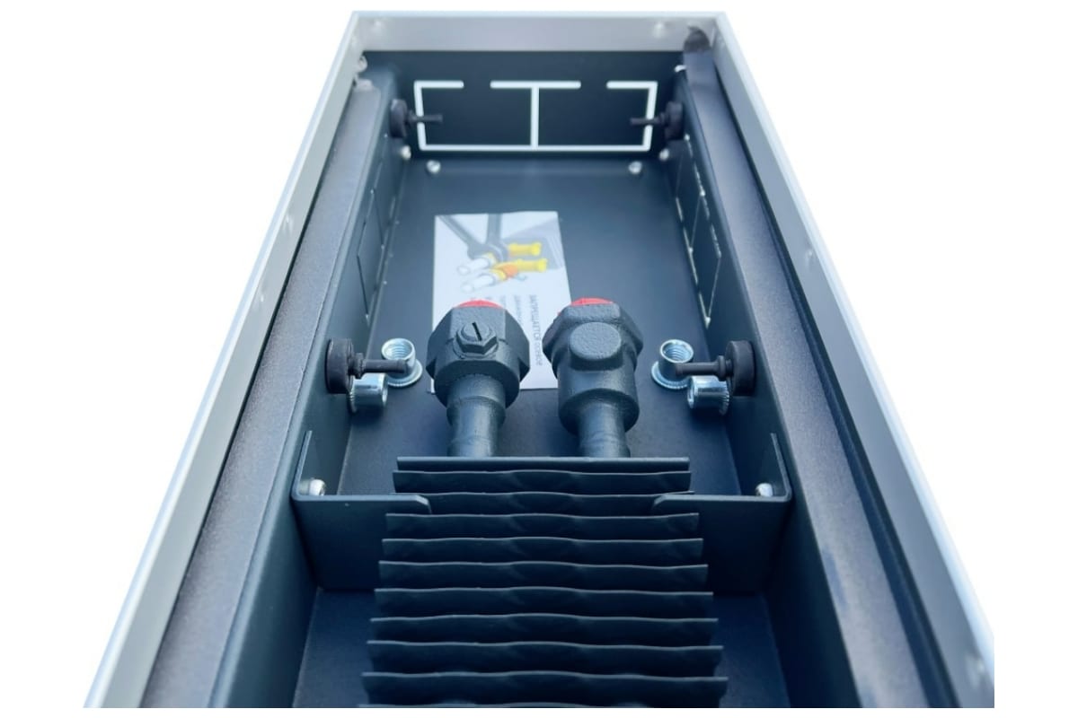 Встраиваемый конвектор Techno Power KVZ 300-105-3100 RH04000759 с естественной конвекцией без вентилятора - статический прибор с малыми габаритами. Подходит для встраивания в подоконник и пол с невысоким уровнем стяжки. Применяется как в жилых, так и в офисных зданиях с панорамными окнами, обеспечивает быстрый и равномерный обогрев помещения, препятствует запотеванию стекол.