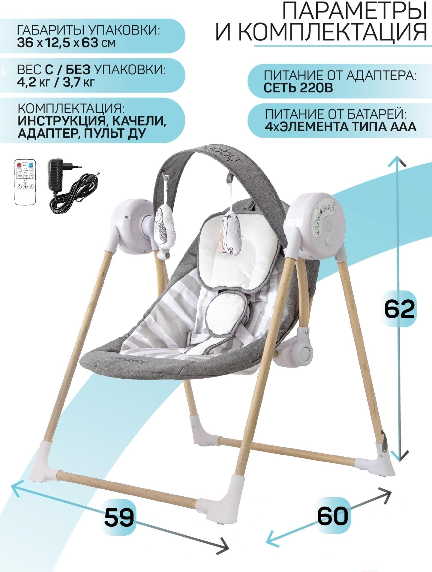 • Дополнительные принадлежности подвесные игрушки (2 шт), анатомический вкладыш (под голову), пульт ДУ