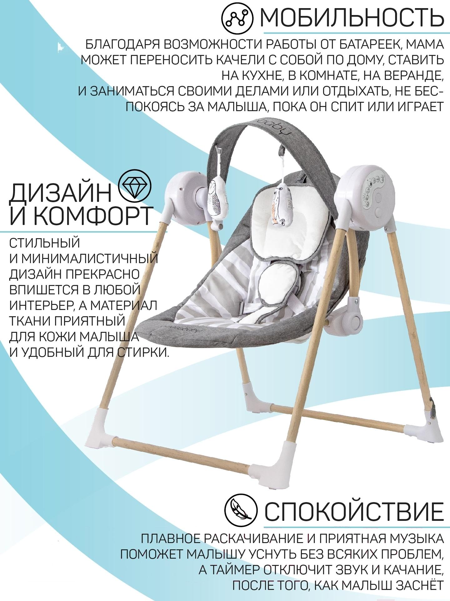 Качели для новорожденных Amarobaby Wooden Swing / AB20-22WOOD/11 (серый)