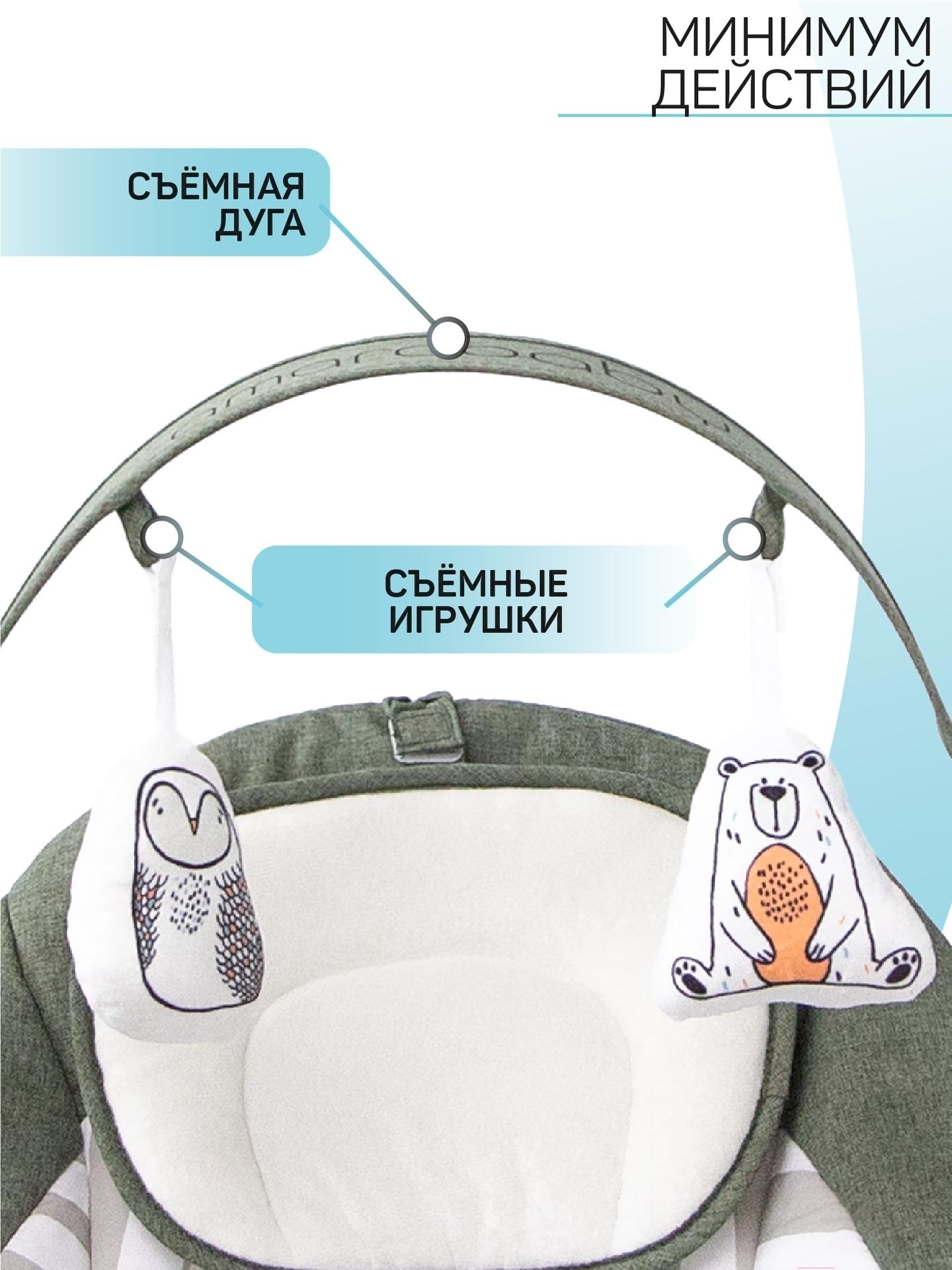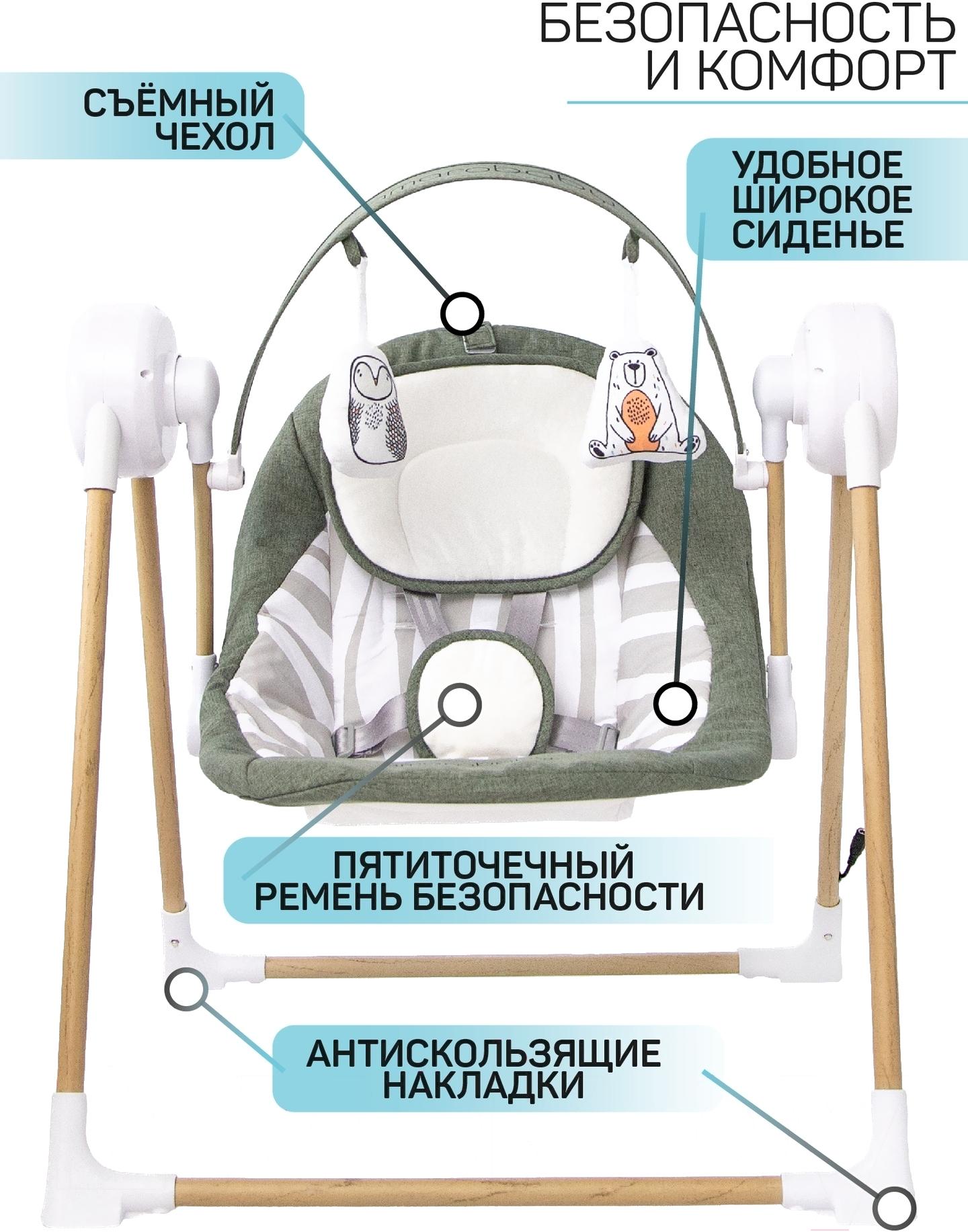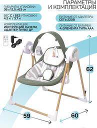• Дополнительные принадлежности подвесные игрушки (2 шт), анатомический вкладыш (под голову), пульт ДУ
