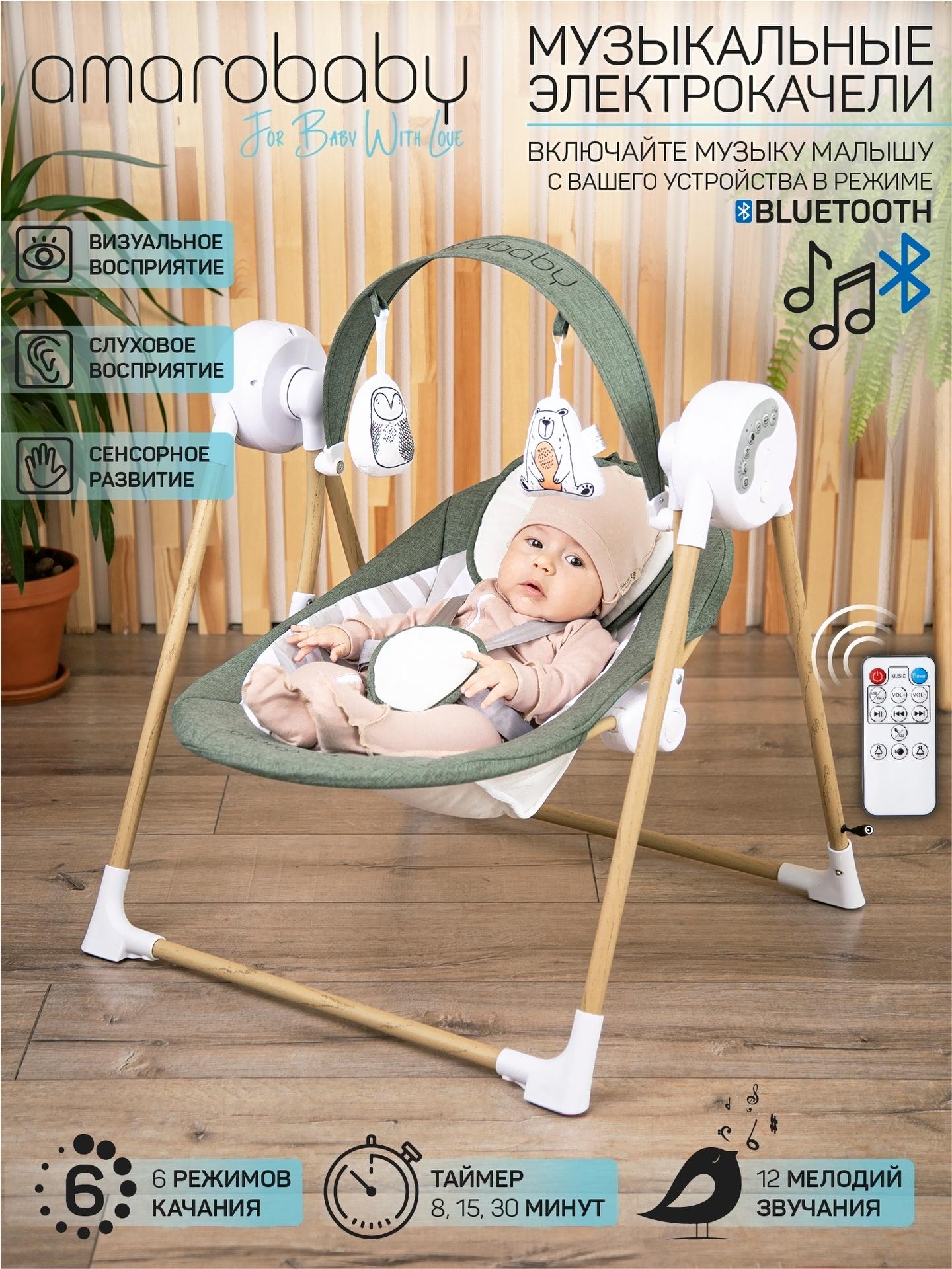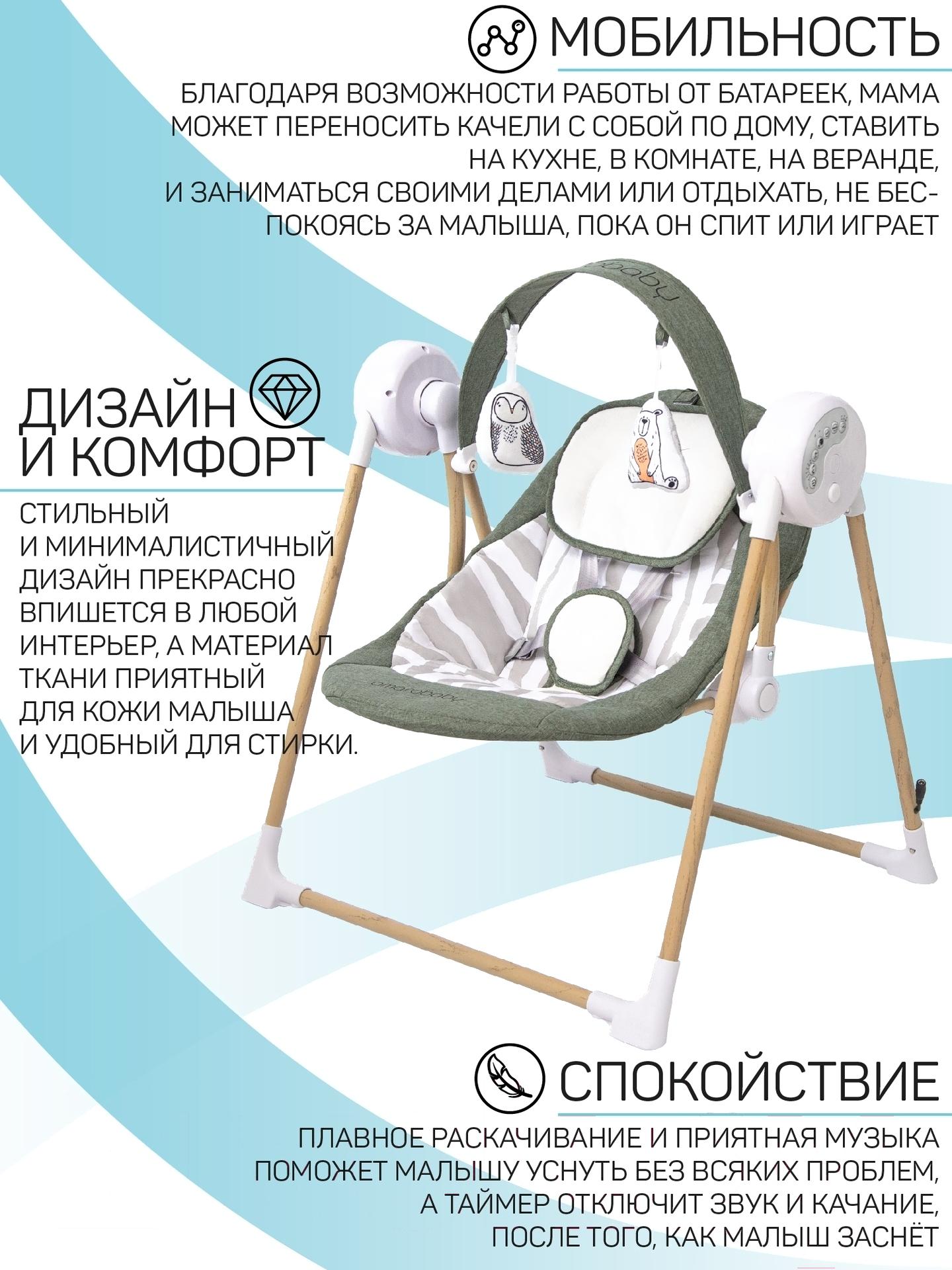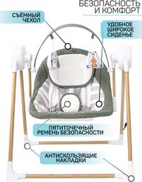 Качели для новорожденных Amarobaby Wooden Swing / AB20-22WOOD/26 (хаки)