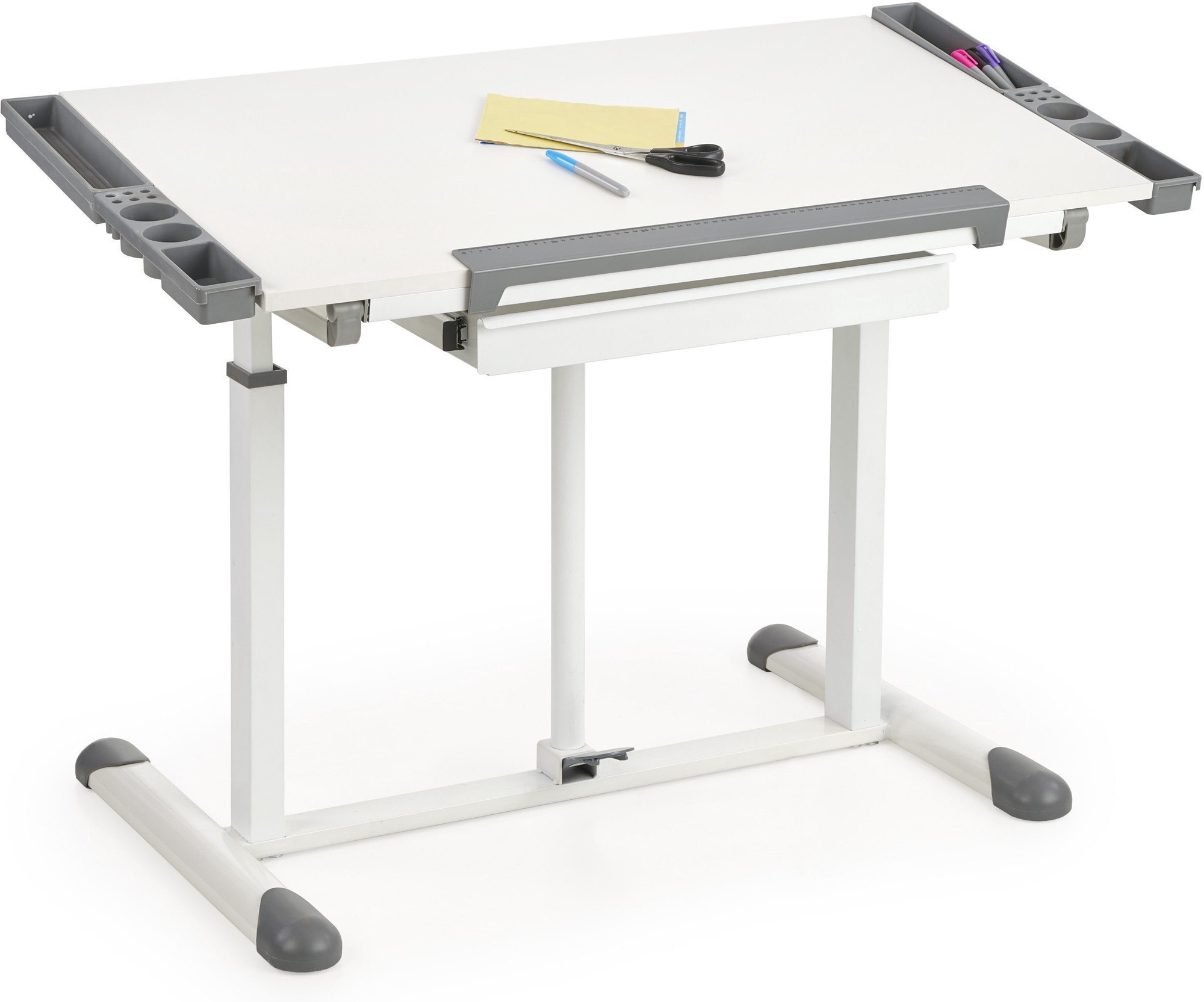 - Papildoma informacija Komplekte: Stalas. Su reguliuojamu stalviršio kampu ir aukščiu. Medžiaga: laminuota medienos drožlių plokštė / milteliniu būdu padengtas plienas