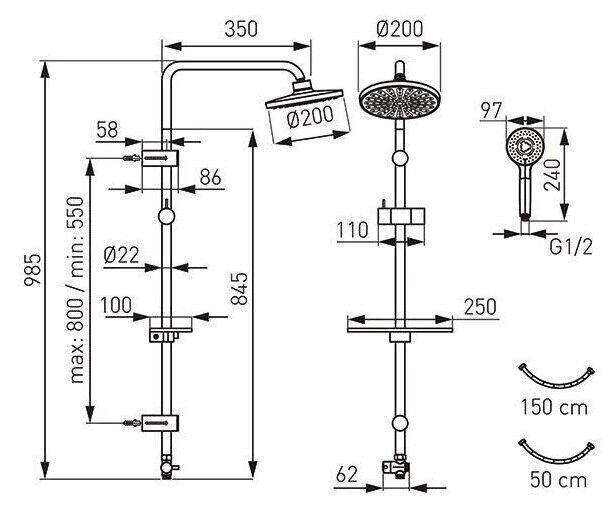 - Komplekte praktiška reguliuojama lentynėlė kosmetikai