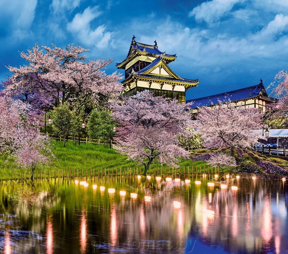 • Рисунок вода, природа, дерево, дом, здание, лето, архитектура, сад цветущий, флора, пруд
