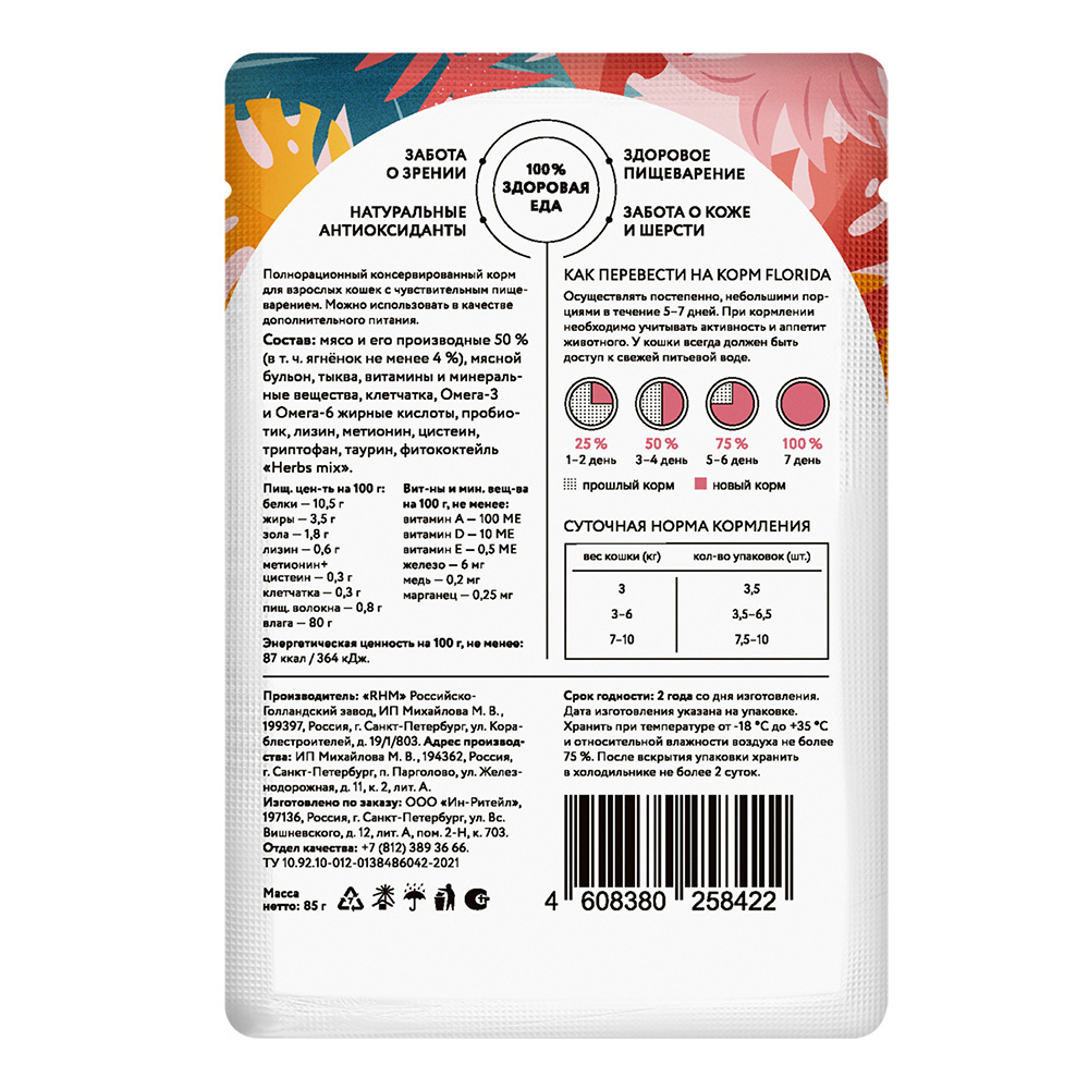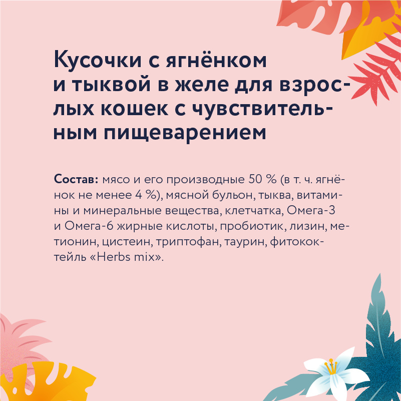 FLORIDA (паучи) паучи для взрослых кошек с чувствительным пищеварением: кусочки с ягненком и тыквой в желе – купить в интернет зоомагазине Petshop.ru: цены, отзывы, характеристики. Быстрая доставка в Санкт-Петербурге, Москве и по России.