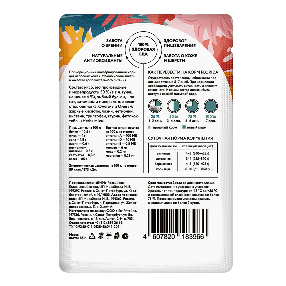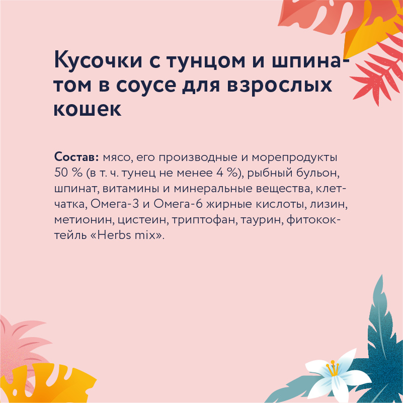 FLORIDA (паучи) паучи для взрослых кошек: кусочки с тунцом и шпинатом в соусе – купить в интернет зоомагазине Petshop.ru: цены, отзывы, характеристики. Быстрая доставка в Санкт-Петербурге, Москве и по России.