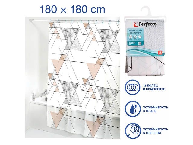 Шторка для ванной (12 колец в комплекте), 180x180 см, Secret, мраморный узор, PERFECTO LINEA (Материал: ПЭВА) 36-118002