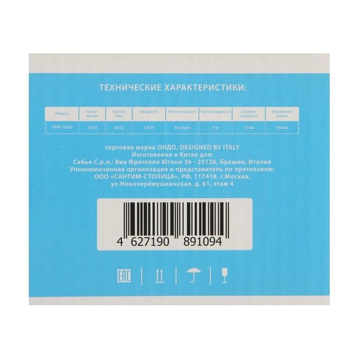 Насос повышения давления ONDO HPM 15х90, 120 Вт, напор 9 м, 30 л/мин