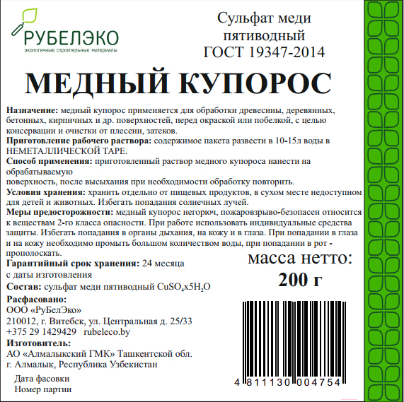 - Дозировка 200 г на 10-15 литров воды (в неметаллической таре)