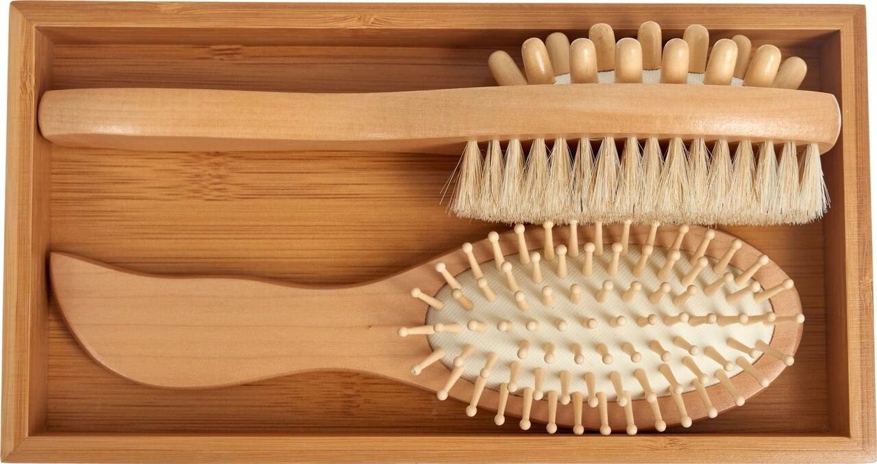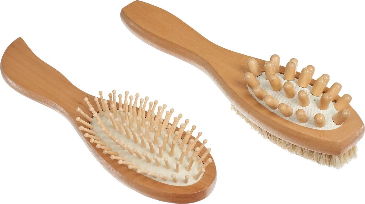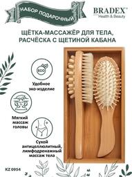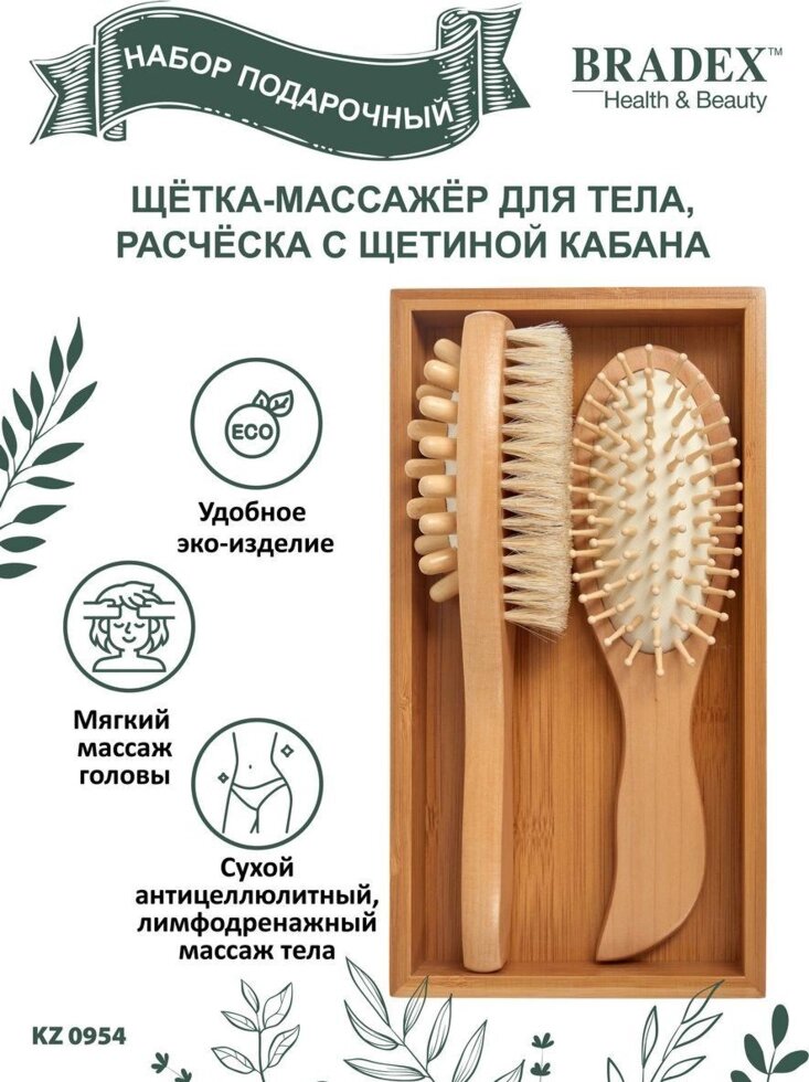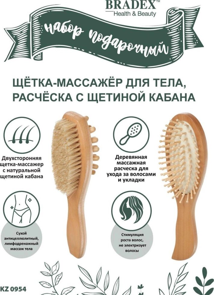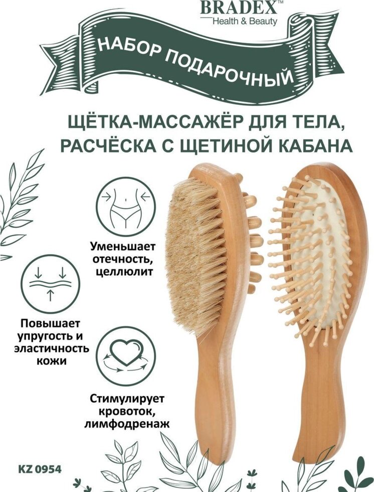 Набор подарочный щётка-массажёр с щетиной кабана, расчёска