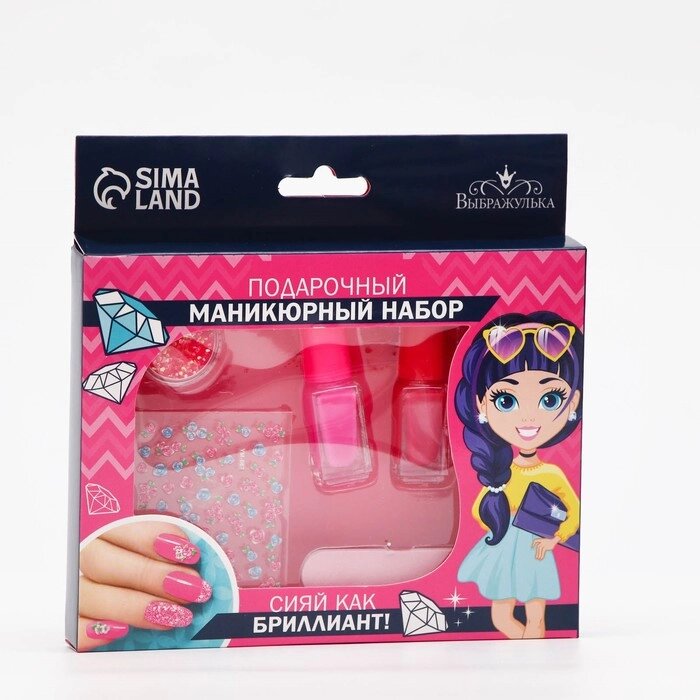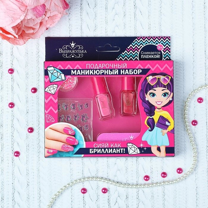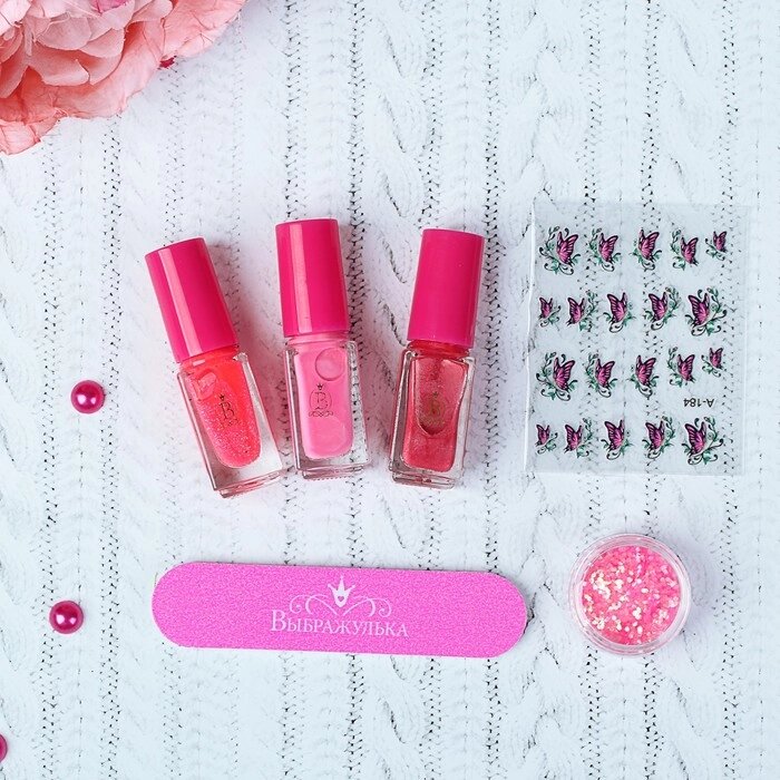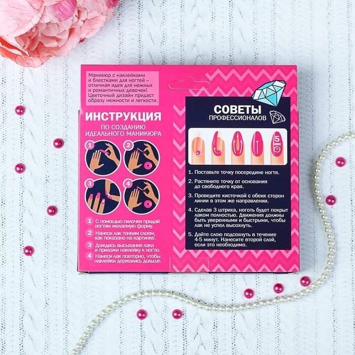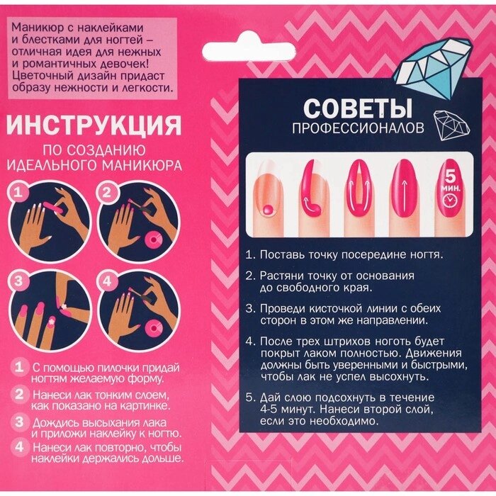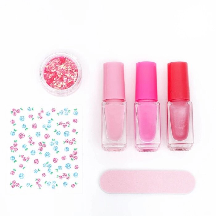 Составляющие набораПилка, Наклейки, Блёстки, Лак для ногтей