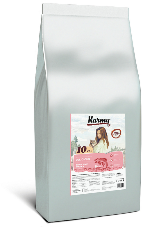 Сухой корм Karmy Delicious с лососем для взрослых кошек привередливых в питании