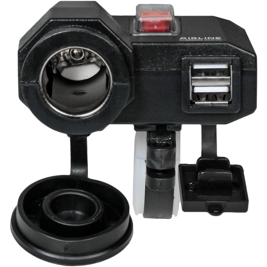 Розетка USB Airline AEBJ207, для мотоциклов, с 2 портами 2.1А, с прикуривателем, 5В