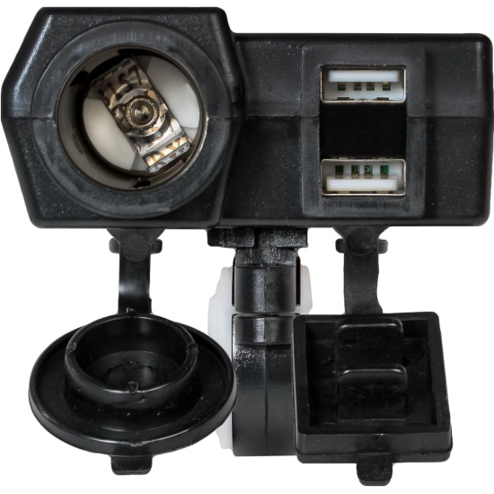 Влагозащищённая розетка USB для мотоциклов, устанавливается на руле мотоцикла, скутера, квадроцикла. Подключается к аккумулятору, рабочий ток 12 Вольт. Позволяет заряжать и подключать любые устройства от порта USB и прикуривателя. Главным преимуществом является кнопка включения и выключения розетки. Вы можете не беспокоиться, что аккумулятор вашего железного друга разрядится. Устройство оборудовано заглушкой блока USB и прикуривателя, чтобы влага не попала в розетку. Также розетка оборудована вольтметром, что позволит вам следить за напряжением бортовой сети.