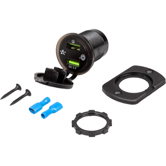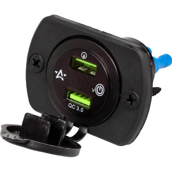 Влагозащищенная встраиваемая розетка USB устанавливается в салоне автомобиля или другого транспортного средства. Подключается к бортовой сети автомобиля 12/24 Вольт. Позволяет заряжать мобильные устройства от двух портов USB, которые поддерживают стандарт быстрой зарядки QC 3.0. Розетка оборудована современной зарядкой (QC), что позволяет использовать быструю зарядку на вашем устройстве. Также розетка оборудована вольтметром. Главным преимуществом является сенсорная кнопка включения и отключения розетки. Вы в любой момент можете отключить вольтметр, чтобы он вам не мешал. Преимущества: Поддерживает стандарт быстрой зарядки QC 3.0. Розетка закрывается брызгозащитной резиновой заглушкой. Для более удобной установки в комплекте вам предоставляется 2 шурупа и панель. Также розетку можно использовать в автобусе, тролейбусе, яхте и т.д.