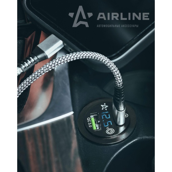 Розетка USB Airline AEBJ202, встраиваемая, с 2 портами QC3.0 и вольтметром, 5В