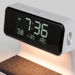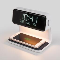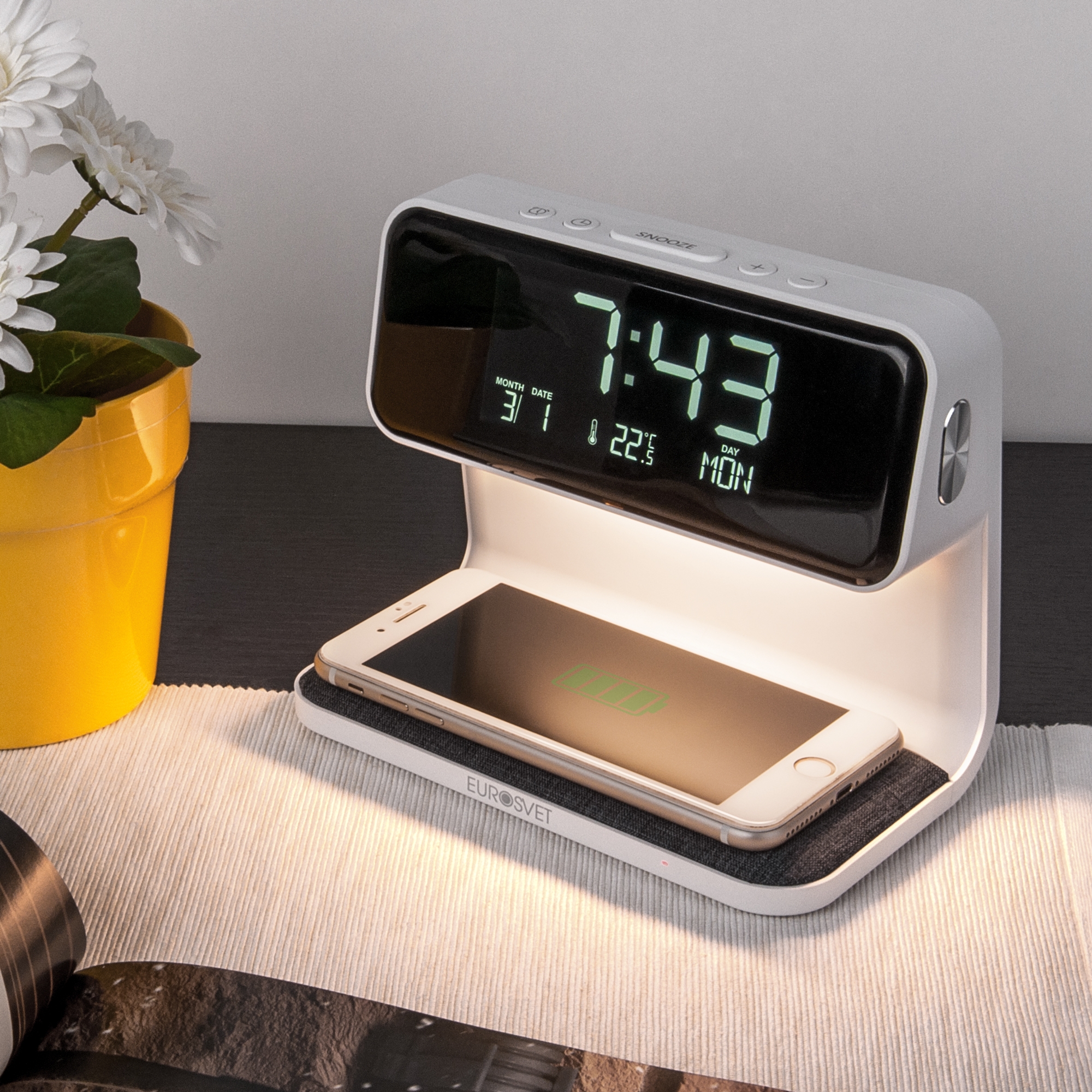 Интерьерная настольная лампа диммируемая светодиодная с выключателем и беспроводным ЗУ, будильником, часами, календарем термометром 80506/1 Eurosvet Smith белый