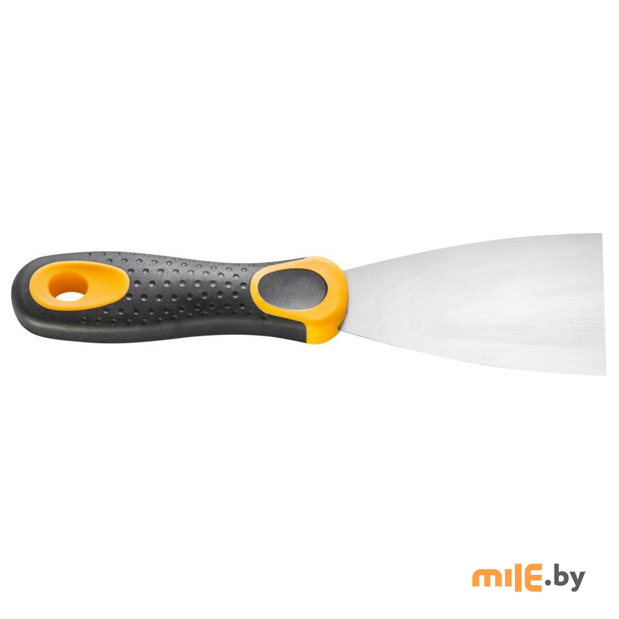 Шпатель - основной инструмент при внутренней отделке помещений, представляет собой металлическую пластину трапециевидной формы с эргономичной пластиковой ручкой, предназначен для нанесения шпаклевочных и клеевых смесей на обрабатываемую поверхность: стены, пол, потолок. Может применяться для снятия старых обоев или краски.