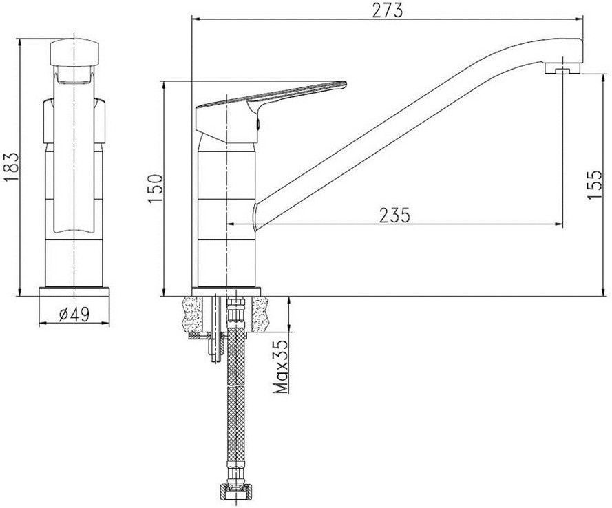 - Papildoma informacija Žarna: 35 cm (1/2"). Plotis: 4,9 cm. Aukštis: 18,3 cm. Gylis: 27,3 cm