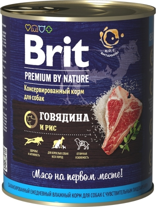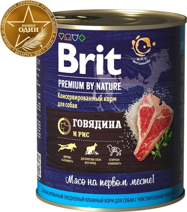 Консервы для собак BRIT Premium by Nature говядина и печень 0,85 кг