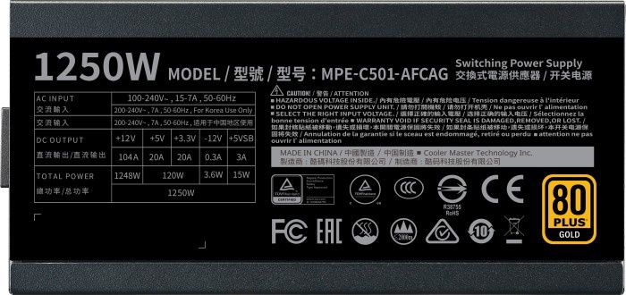 Maitinimo blokas Cooler Master MWE GOLD 1250 1250 W, 140 mm, 1 - 30.1 dB