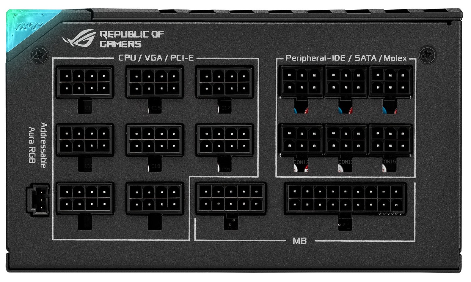 - Moduliniai kabeliai Kad kompiuterio korpuse būtų geresnis vėdinimas ir PSU kabeliai netrukdytų oro srautui, kai kurie maitinimo šaltiniai yra aprūpinti moduliniais pajungimais ir kabeliais. Ne