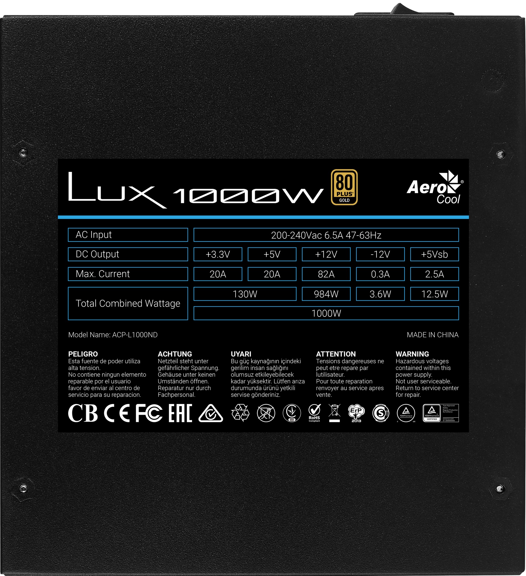 Maitinimo blokas AeroCool LUX 1000W 1000 W, 120 mm