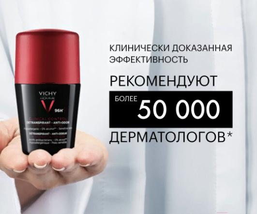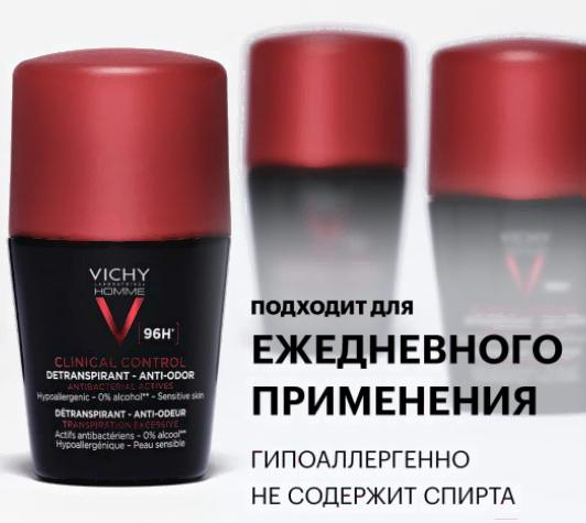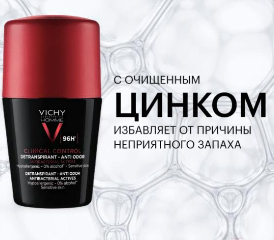Дезодорант шариковый Vichy Clinical Control Homme Anti Odor 96ч (50мл)
