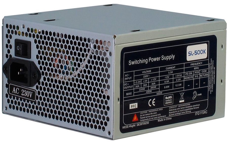 - Galia Nurodomas maitinimo bloko galingumas vatais. Didesnis galingumas reiškia aukštesnį kompiuterio veikimo stabilumą. Šiuolaikinių kompiuterių vidutinis rekomenduojamas maitinimo bloko galingumas yra 500 W ar galingesnį. Jei naudojate keletą kietųjų diskų, galingą vaizdo plokštę ir procesorių, rekomenduojame įsigyti maitinimo bloką su 600 W ar galingesnį. 500 W