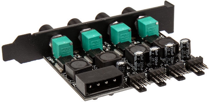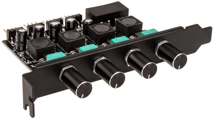 - Papildoma informacija Suderinama: 1x PCI plokšte. Medžiaga: aliuminis. Juoda spalva. Ventiliatoriaus kanalai: 4 (4 ventiliatoriams, maks. 36 W kanale). Įtampa: 2-12 V. Jungtys: 1x 4 kontaktų Molex 4x 4 / 3 kontaktų (ventiliatorius)